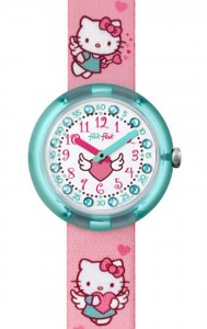 –Reloj Flik Flak Hello Kitty Cupido FLNP020: este reloj analógico tiene pulsera textil decorada con los dibujos de Hello Kitty. Este reloj es sumergible a 3 ATM y tiene una garantía de 2 años. Tiene un precio de 42 euros, que con el descuento del 10 % que te haremos se queda en 37,80 euros, a este precio le tienes que restar otro 2% si lo adquieres en nuestra página web y pagas con tarjeta de crédito o débito.