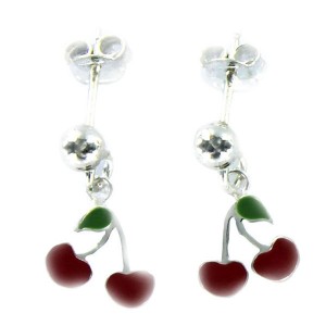 Pendientes 9084443: Pendientes largos con forma de cerezas esmaltadas.