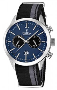 Reloj Festina F16827/2: con función cronógrafo y calendario, la correa es de Nylon en tonos grises.