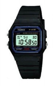 Reloj Casio F-91W-1YER: reloj digital con la correa de goma. Tiene función de cronógrafo.