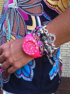 Los relojes atrevidos suelen estar diseñados con colores que destacan y no pasan desapercibidos. Aunque todo depende de gustos, la opción más sencilla que tenemos para combinar este tipo de relojes, es la que el reloj sea el complemento estrella y lo demás sea un mero acompañamiento. Es decir, si queremos combinar el reloj con pulseras o anillos, estos tienen que ser de colores y formas sencillas, que no compitan por llamar la atención. Cuanto más atrevido sea nuestro reloj más sencillos tienen que ser el resto de complementos.
