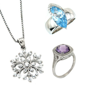 Artículos de la imagen: collar, anillo azul y anillo morado