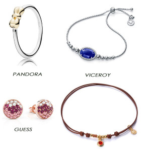 Artículos de la imagen: Anillo Pandora, Pulsera Viceroy, Pendientes Guess y Collar marrón Viceroy