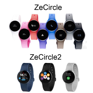 Los relojes ZeCircle y ZeCircle2 tienen una caja de 34.00mm. Su pantalla es táctil, pero los ZeCircle2 tienen pantalla a color, y los ZeCircle no. Ambas colecciones tienen correas o pulseras intercambiables. Se pueden comprar en packs de 3 o de 7, como en las pulseras ZeFit anteriores.