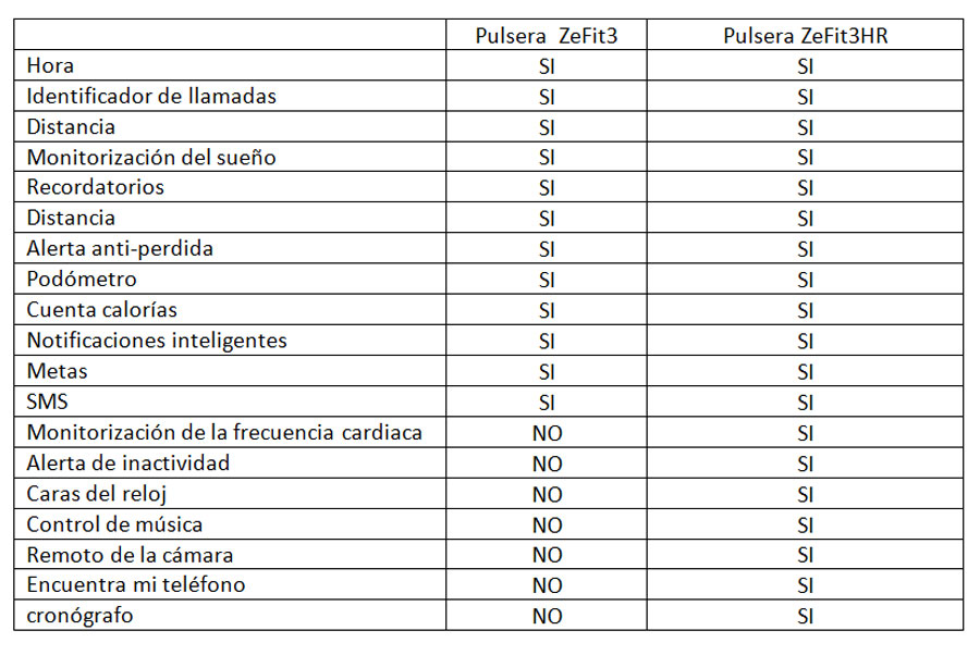 Estás dos colecciones, ZeFit3 y ZeFit3HR, se diferencian en las distintas funciones que incorporan. Las pulseras ZeFit3 son más sencillas y tienen menos funciones, en cambio las pulseras ZeFit3HR contiene más funciones, consiguiendo una pulsera inteligente más completa, aunque esto depende de las necesidades de cada persona.