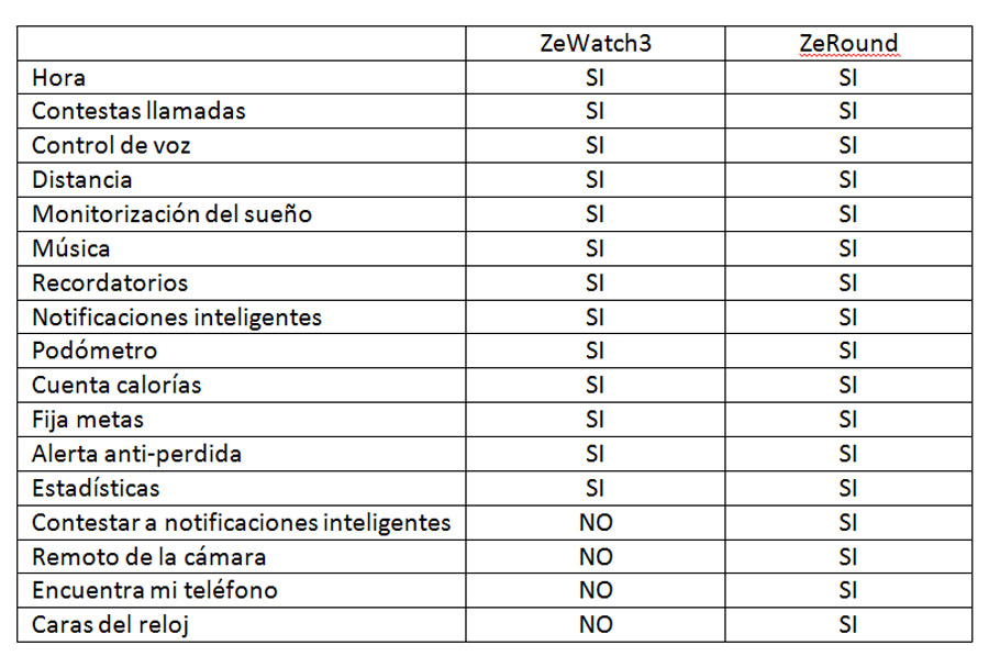 Cuadro-resumen comparativo de las aplicaciones de ZeRound y ZeWatch3