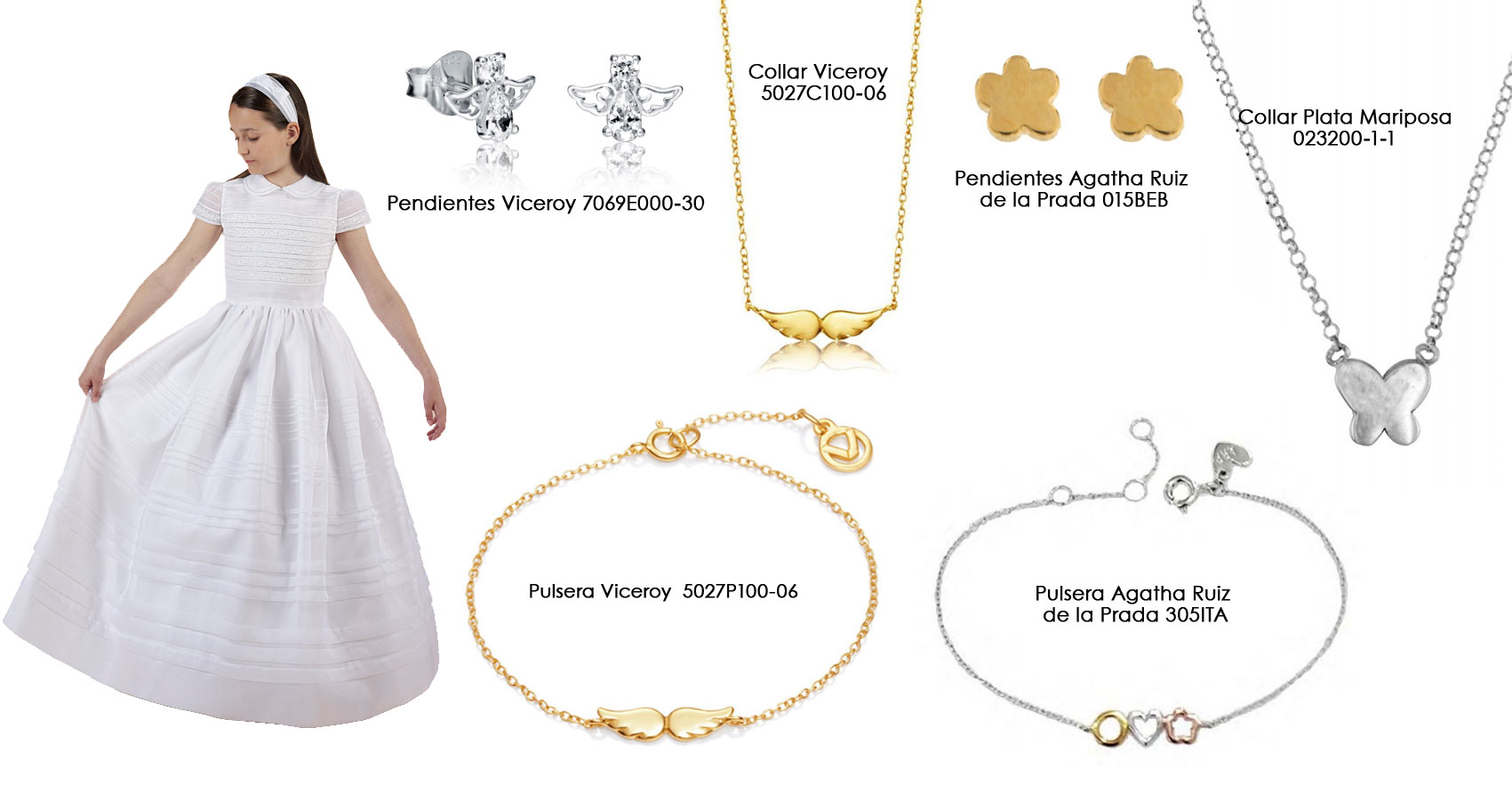 Para niña recomendamos joyas de plata, ya sean bañadas en dorado o no, depende de los gustos y del vestido elegido.