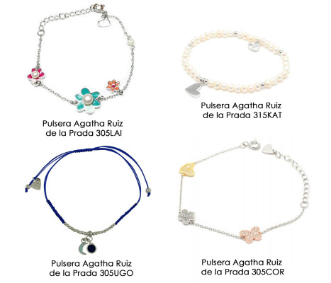 Las pulseras Agatha Ruiz de la Prada son geniales para conquistar a las niñas. Sus diseños transmiten la elegancia de las joyas, como las que utilizan su mamá, pero conservan ese espíritu fresco. Como los collares, las pulseras son regulables, indispensable para las niñas que se encuentran en continuo crecimiento.