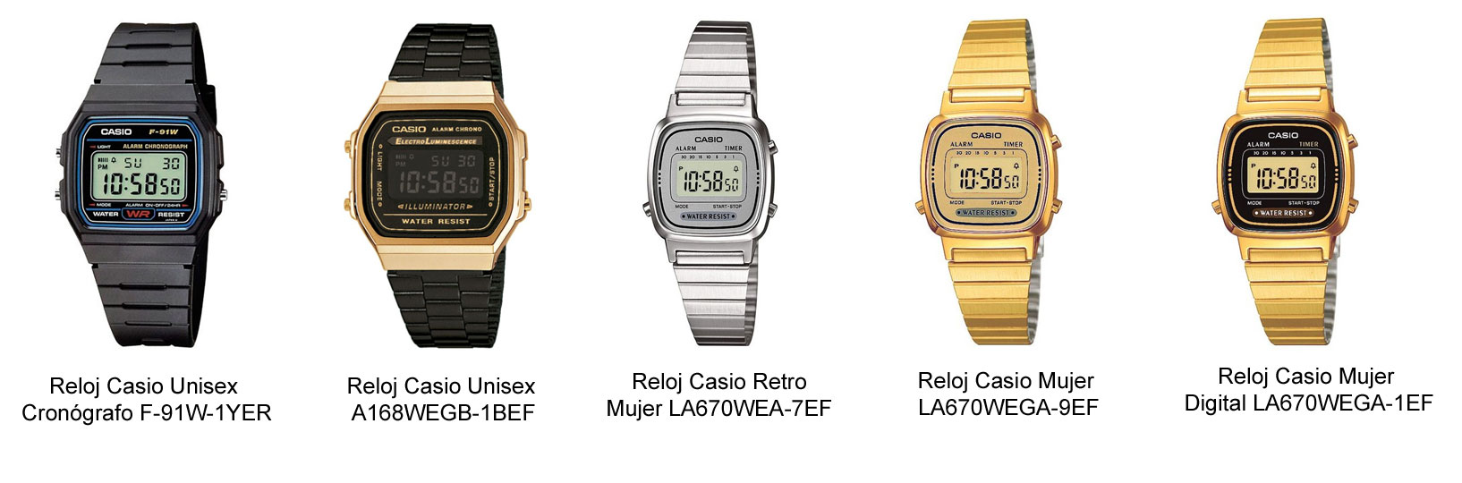 No todos los relojes clásicos son analógicos, Casio es una firma de relojes que cuenta con el reloj digital clásico de todos los tiempos. Dentro de su línea, Casio Collection, encontramos el mítico reloj digital de diseño rectangular, elaborado en poliuterano, metal, o piel. Es un reloj que se ha ido renovando su diseño según evolucionaba la moda, en la actualidad contamos con una gran variedad de diseños de este reloj emblemático de la casa Casio.