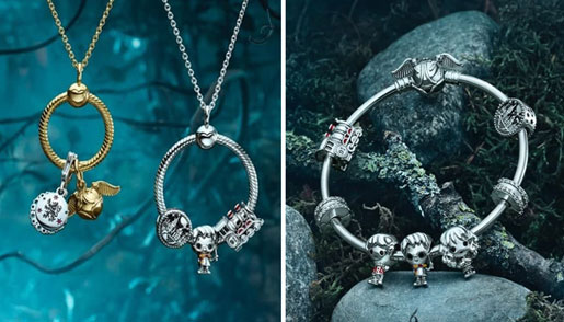 Cuando pensábamos que no podía sorprendernos más, Pandora lo vuelve a hacer y con creces. En 2020, comienza la andadura de Pandora por el mundo de Hogwarts. Ofreciéndonos la posibilidad de adquirir a los personajes de la película: Harry, Ron y Hermione. Personajes secundarios o mascotas, tales como Dobby y Hedwig. Si por el contrario te apetece algún objeto representativo de la saga, puedes elegir entre la locomotora del tren de Hogwarts, la Escoba y Varita mágica de Harry Potter, Escudo de Gryffindor, Castillo de Howarts, Switch Dorada, Carta de admisión en Hogwarts, Símbolo de las reliquias de la muerte., El Sombrero Seleccionador…