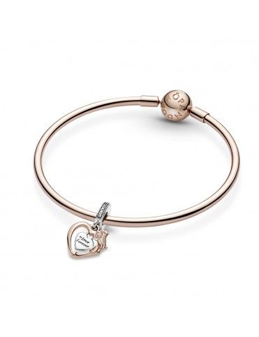 Charm Colgante Pandora Rose Corazón Y Flor Rosa 789290C01, en plata de primera ley y aleación especial de metales con recubrimiento en oro de 14k. Candado con forma de corazón inscrito "Love Forever".