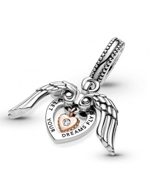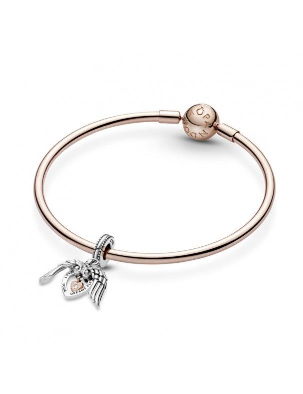 Charm Colgante Pandora Rose Club 2021 789296C01, en plata de primera ley 925mls, aleación especial de metales con un recubrimiento en oro de 14K y adornado con un diamante 0,009ct y con garabciones "Pandora Club 2021" y "Let your dreams Fly".