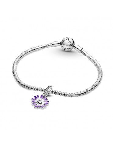 Charm Colgante Pandora Margarita Morada 798771C01, en plata de primera ley y decorado con circonita, esmalte morado, lavanda y blanco.