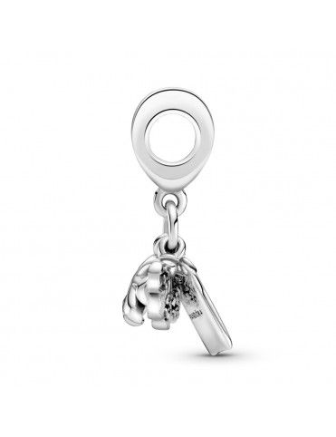 Charm Colgante Pandora Cerezo, Amuleto y Abanico 799326C01, en plata de primera ley. Decorado con circonitas y esmalte amarillo, rosa y morado.