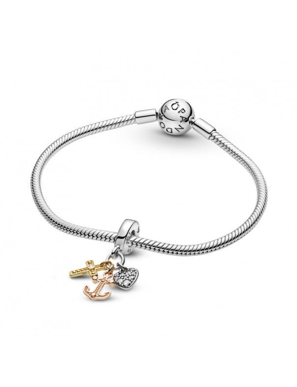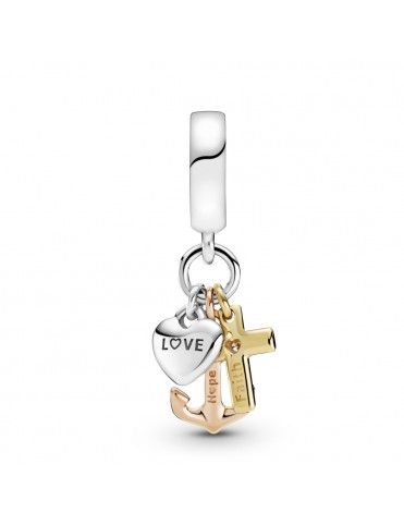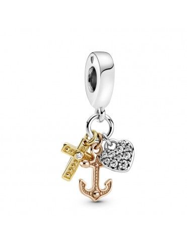 Charm Colgante Pandora Cruz, Corazón y Ancla 799354C01, en plata de primera ley y circonitas. Decorado con Pandora Rose, una aleación única de metales con recubrimiento en oro de segunda ley de 14k y Pandora Shine, una aleación de metales con recubrimiento en oro de primera ley de 18k.