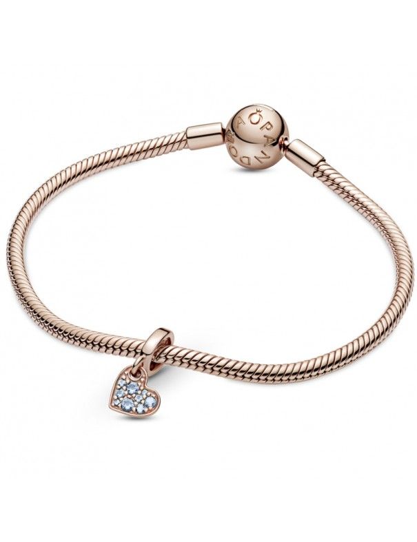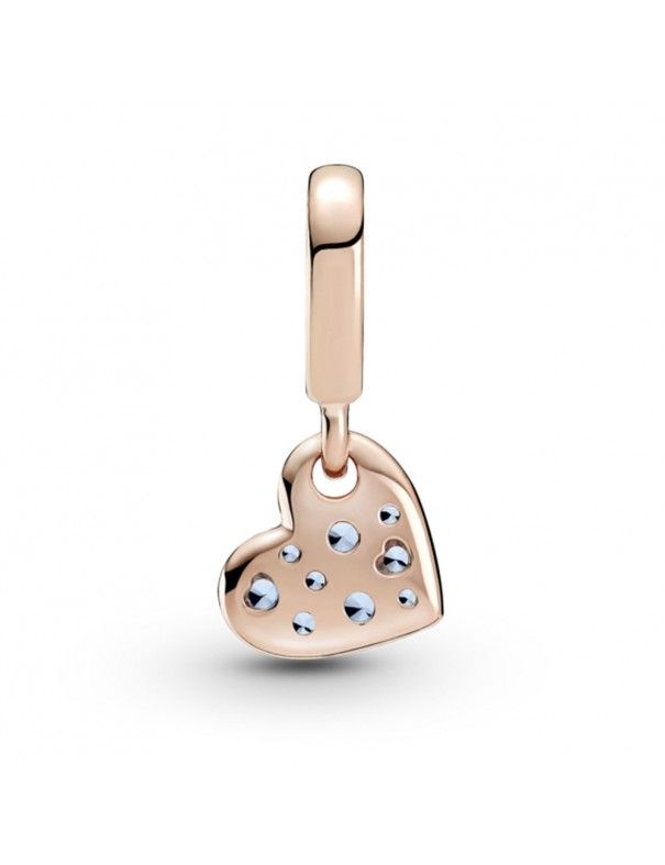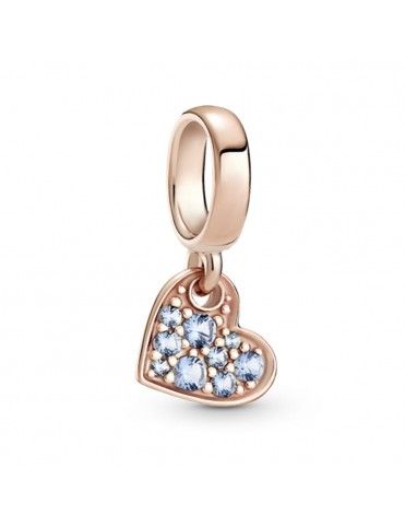 Charm Colgante Pandora Rose Corazón Azul Claro Pavé 789404C01, aleación de metales con recubrimiento en oro de segunda ley 14kts. Decorado con cristales en color azul.