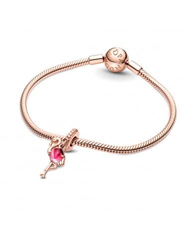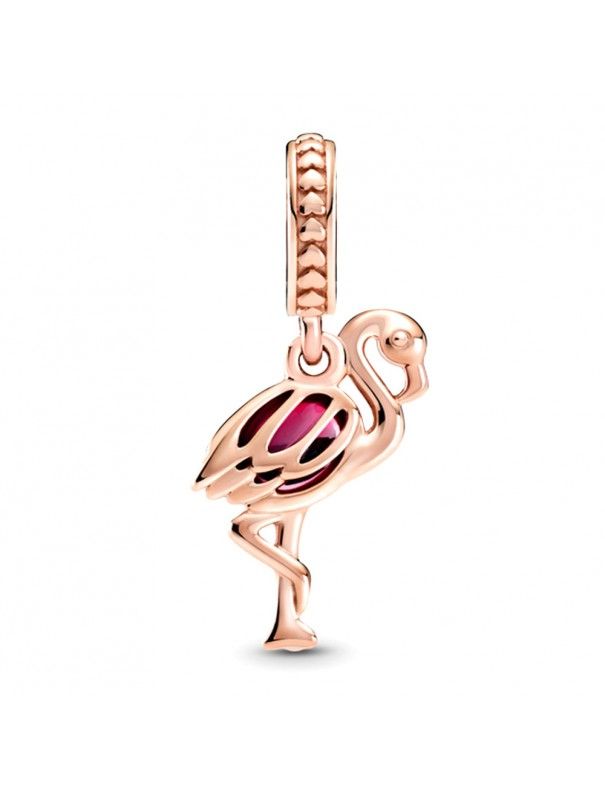 Charm Colgante Pandora Rose Flamenco Rosa 789431C01, aleación de metales con recubrimiento en oro de 14Kts, decorado con cristal de murano rosa.