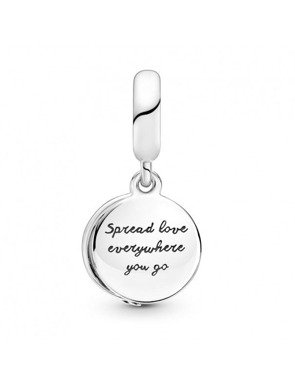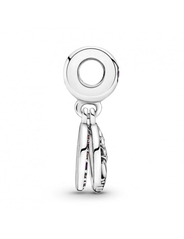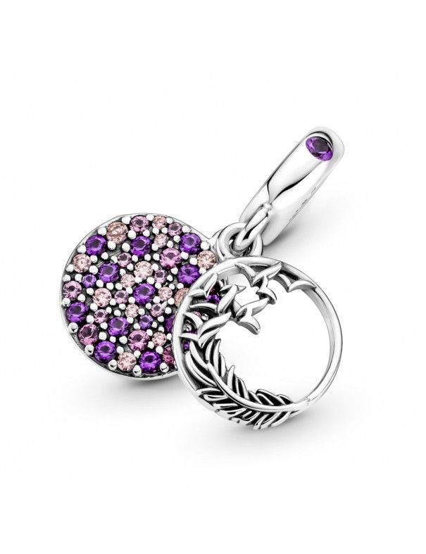 Charm Pandora Colgante Pluma En Pavé 799561C01, en plata de primera ley 925mls, adornado con circonitas cúbicas rosas y cristales púrpura y rosas y grabado "Spread love everywhere you go".