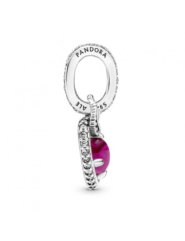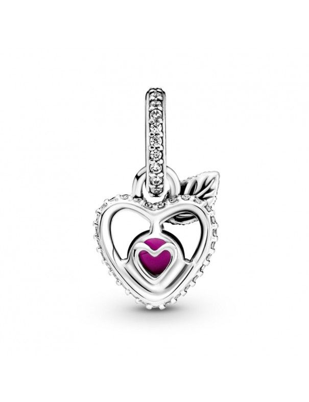 Charm Colgante Pandora Manzana Blancanieves de Disney 399553C01, en plata de primera ley 925mls adornado con circonitas cúbicas transparentes y un cristal cereza rodeado por un marco en forma de corazón.