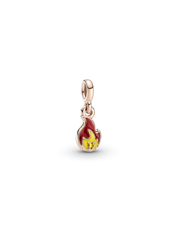 Mini Colgante Llama Ardiente Pandora Me 789690C01, de metal con recubrimiento electrolítico de oro de segunda ley de 14kts y decorado con esmalte de color. Sólo compatible con Pandora Me.