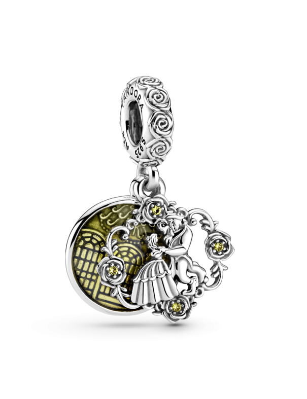 Charm Colgante Pandora La Bella Y La Bestia Bailando 799014C01, en plata de primera ley 925mls y circonitas. Grabación "Beauty is found Within".