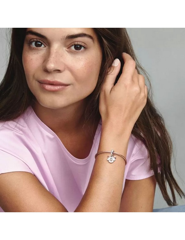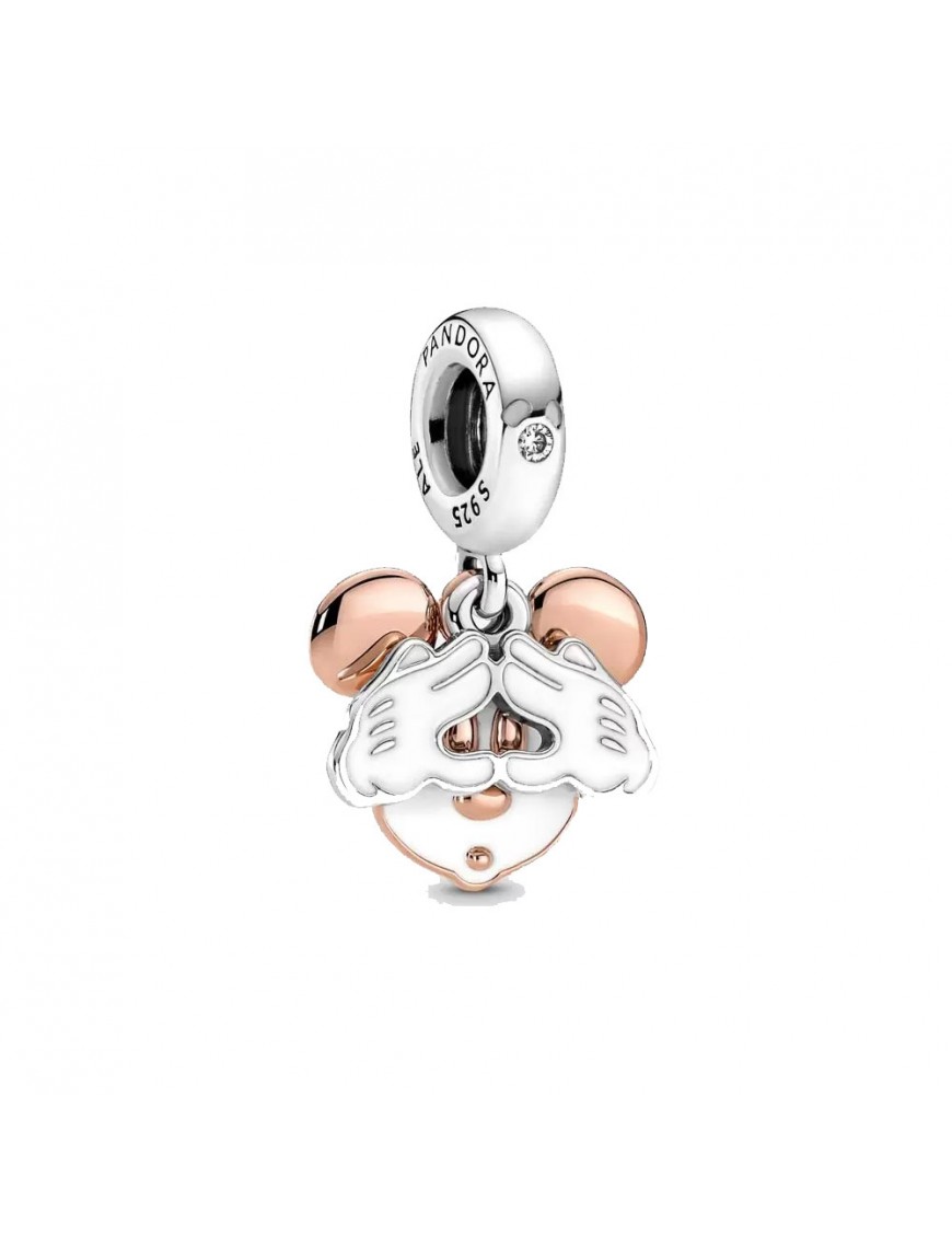 Charm Colgante Pandora Doble Mickey Mouse De Disney 780112C01, en plata de primera ley 925mls, decorado con esmalte de color y circonita. Grabación posterior "Be Youself".