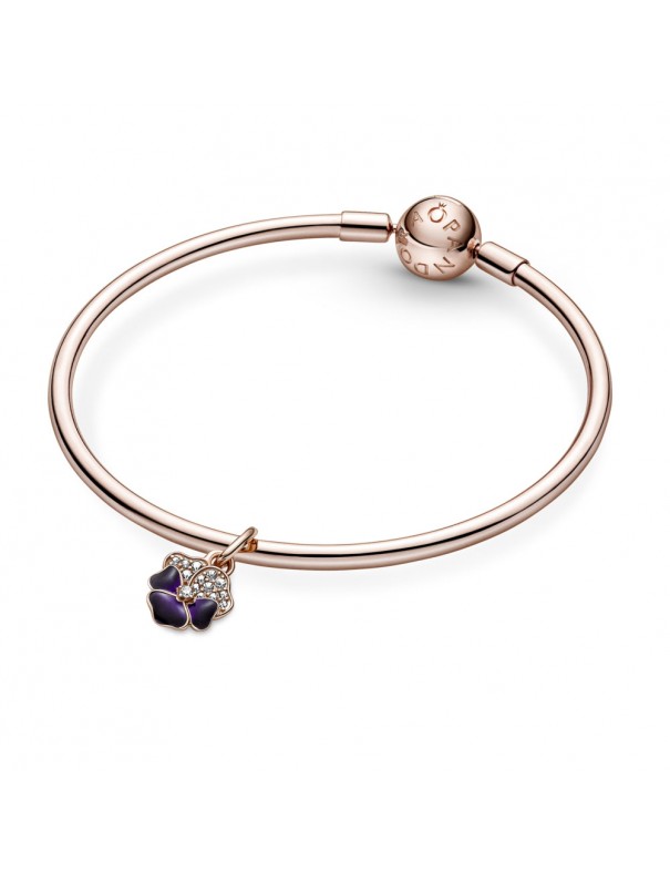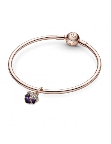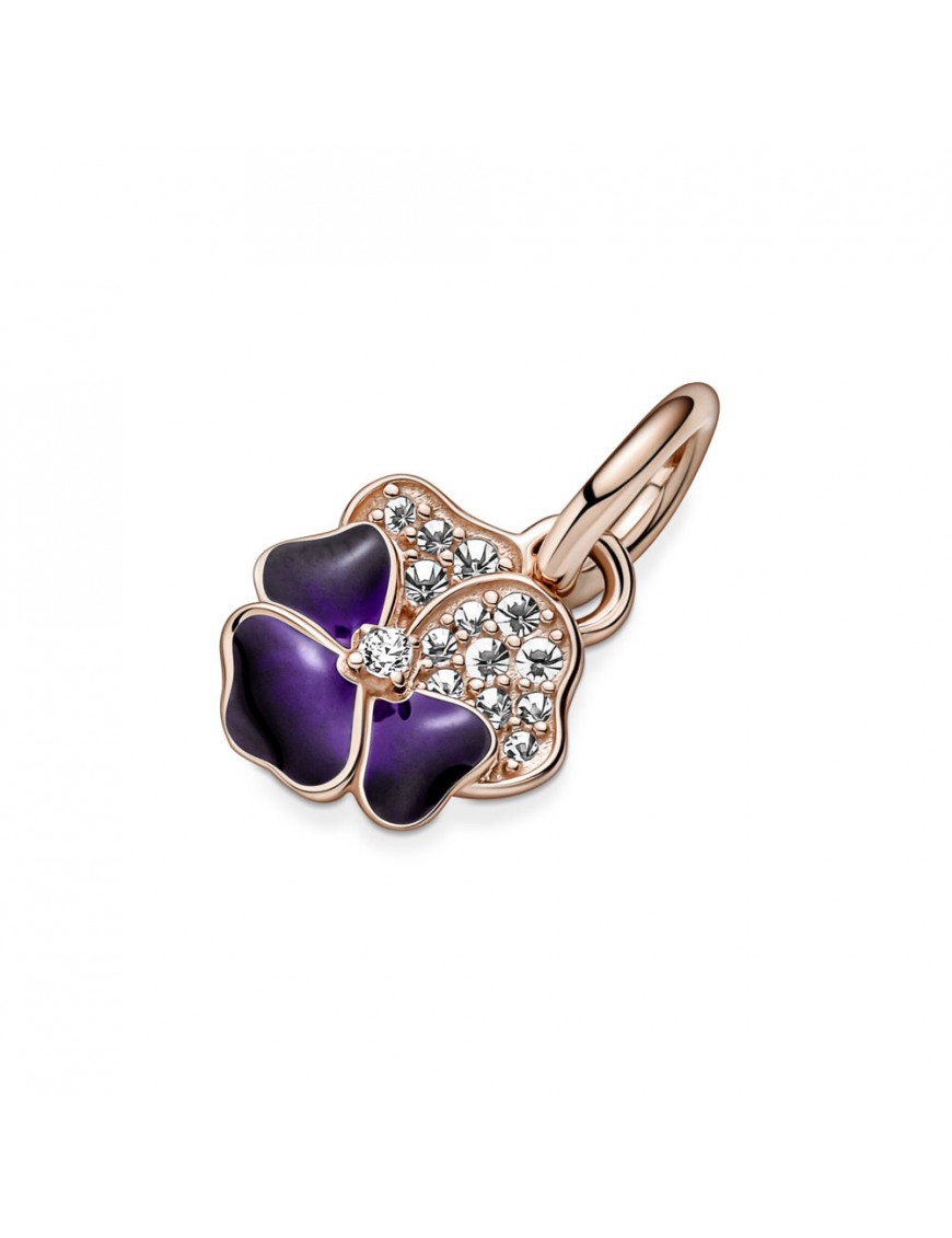 Charm Colgante Pandora Flor Pensamiento Morado 780776C01, con recubrimiento electrolítico de oro de segunda ley de 14kts, decorado con esmalte y circonitas.