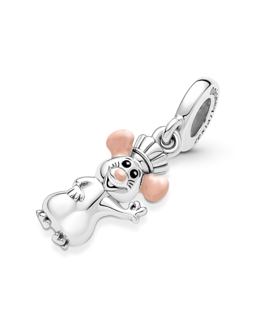 Charm Colgante Pandora Remy de Pixar 792029C01, en plata de primera ley 925mls adornado con esmalte rosa y negro .