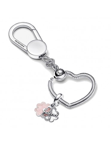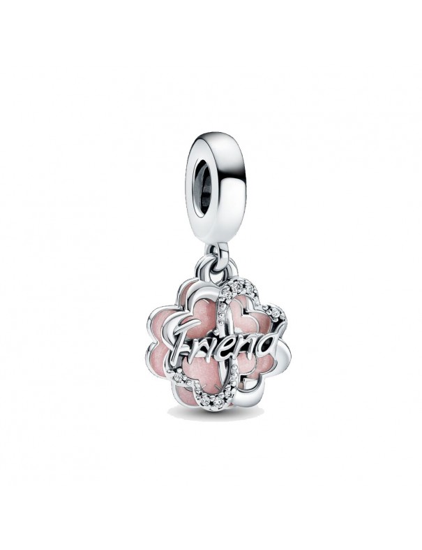 Charm Pandora Colgante Doble Trébol de Cuatro Hojas de la Amistad 792245C01, en plata de primera ley 925mls. Decorado con esmalte de color rosa y grabación trasera "Lucky to have you".