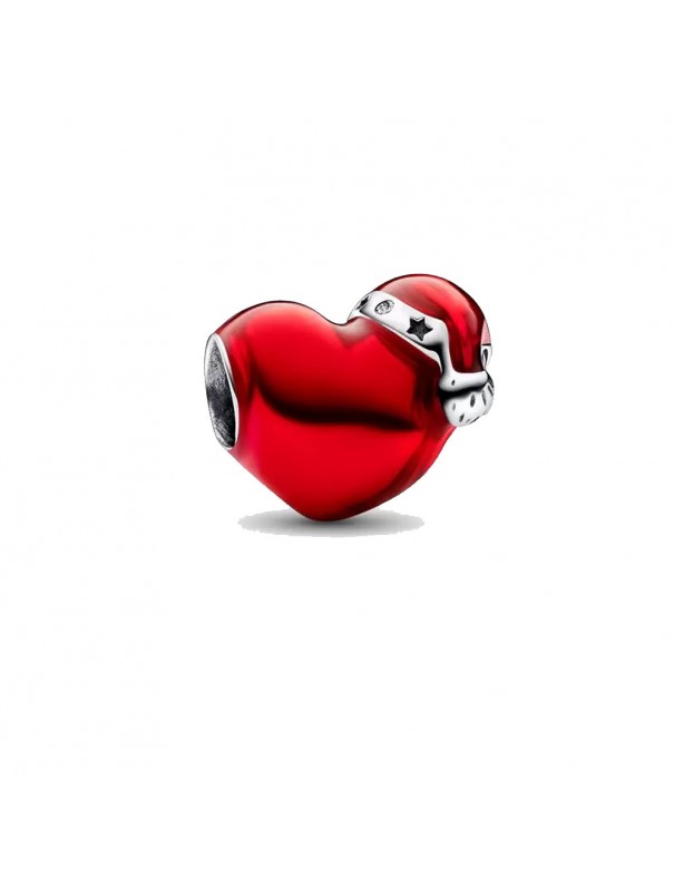 Charm Pandora Corazón Navideño Rojo 792336C01, en plata de primera ley 925mls, decorado con esmalte de color.
