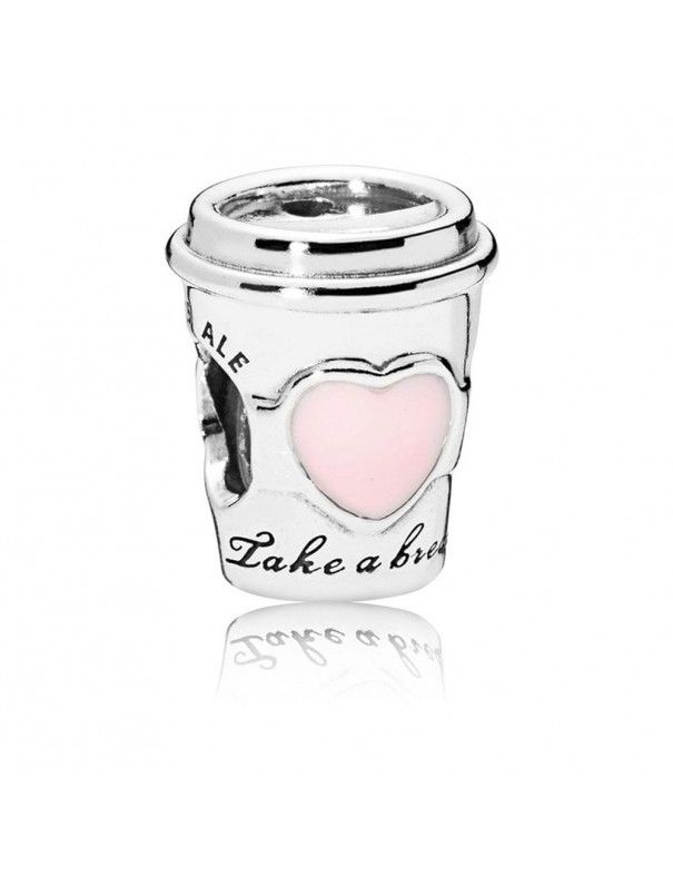 Charm Pandora Plata Bebida para llevar 797185EN160. Es un Charm original de la marca Pandora es de la colección Verano 2018. Está fabricado en plata de ley, 925mls, con forma de Vaso de bebida para llevar y adornado con esmalte rosa y con la grabación Take a Break