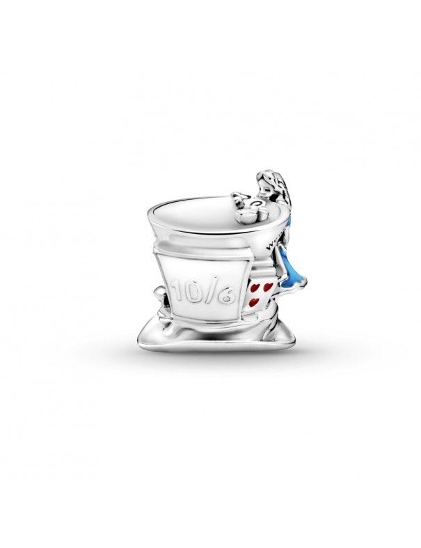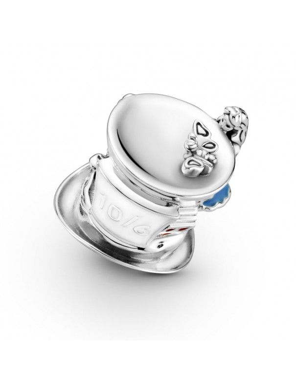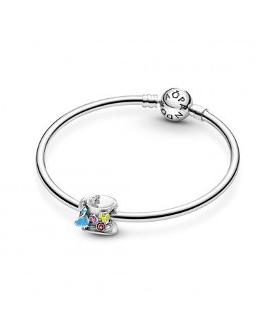 Charm Pandora Fiesta del Té, Sombrerero Loco de Alicia en el País de las Maravillas de Disney 799348C01, en plata de primera ley y decorado con esmalte amarillo, blanco, rosa, rojo y azul.