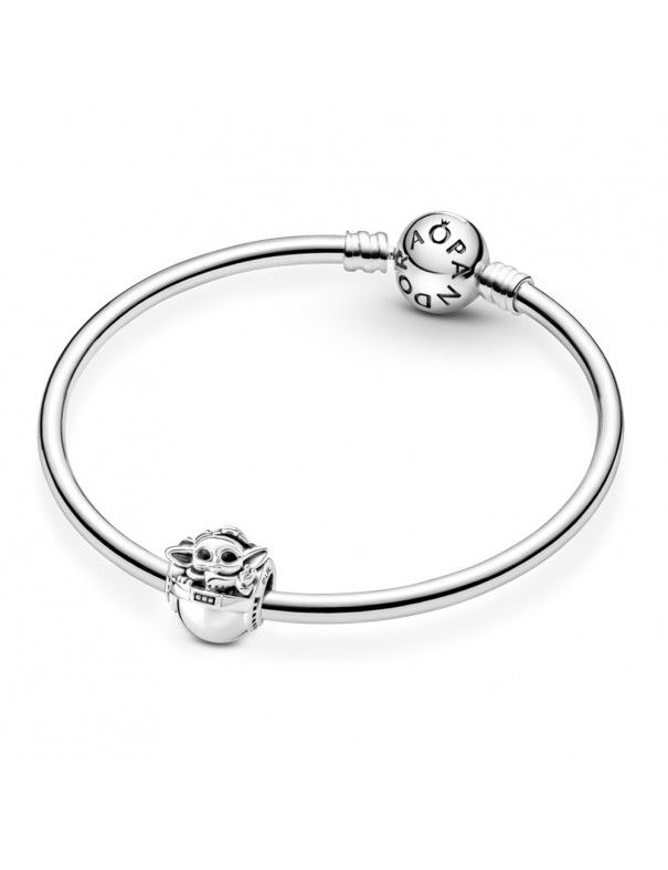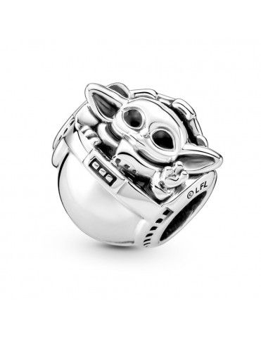 Charm Pandora Grogu & Cuna De Star Wars 799511C01, en plata de primera ley 925mls y adornado con esmalte negro.