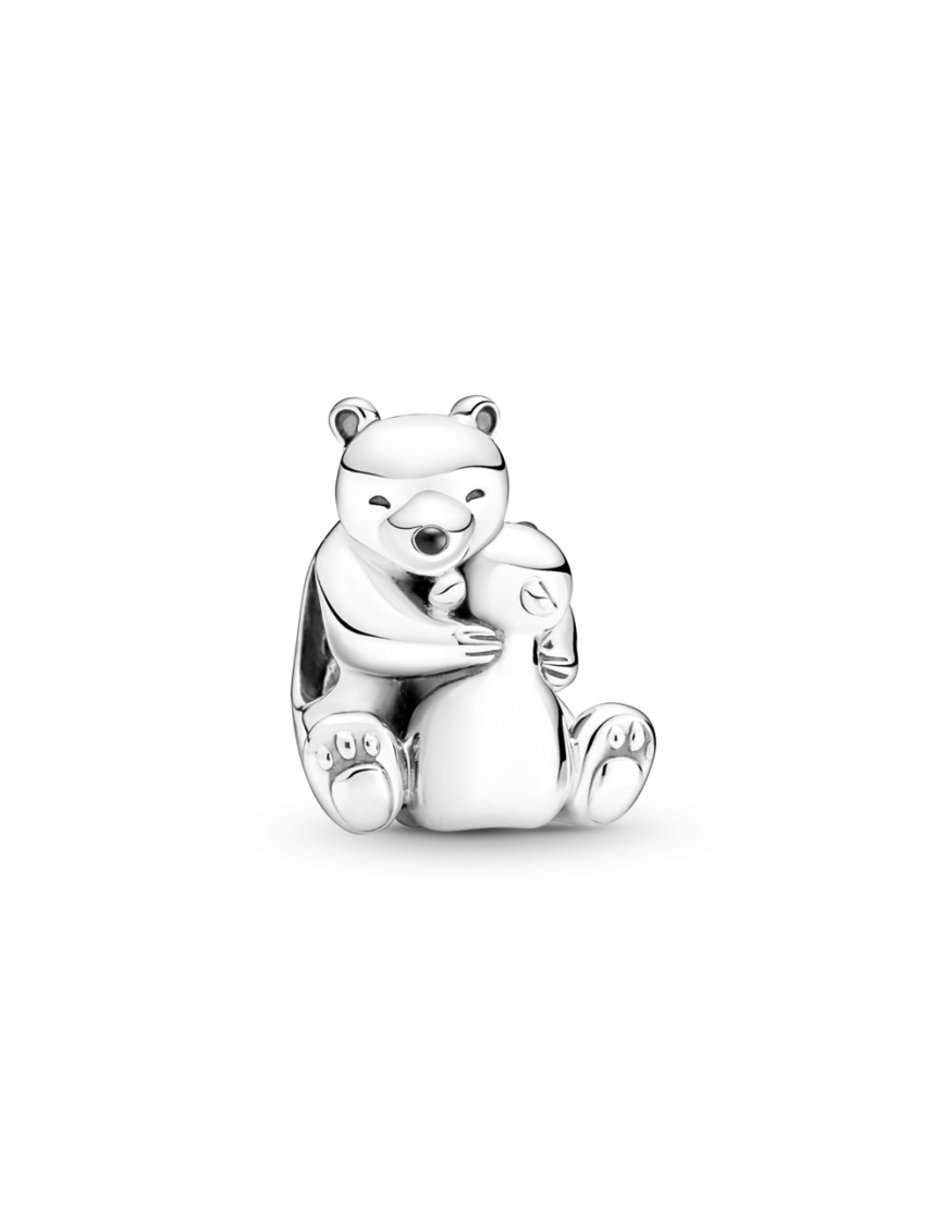 Charm Pandora Osos Polares Abrazados 790032C01, en plata de primera ley 925mls y esmalte negro.