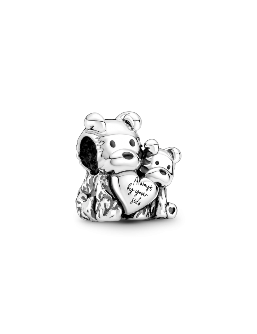 Charm Pandora Amor de Madre y Cachorro 790791C01, en plata de primera ley 925mls, decorado con esmalte de negro. Grabación "Always by your side".