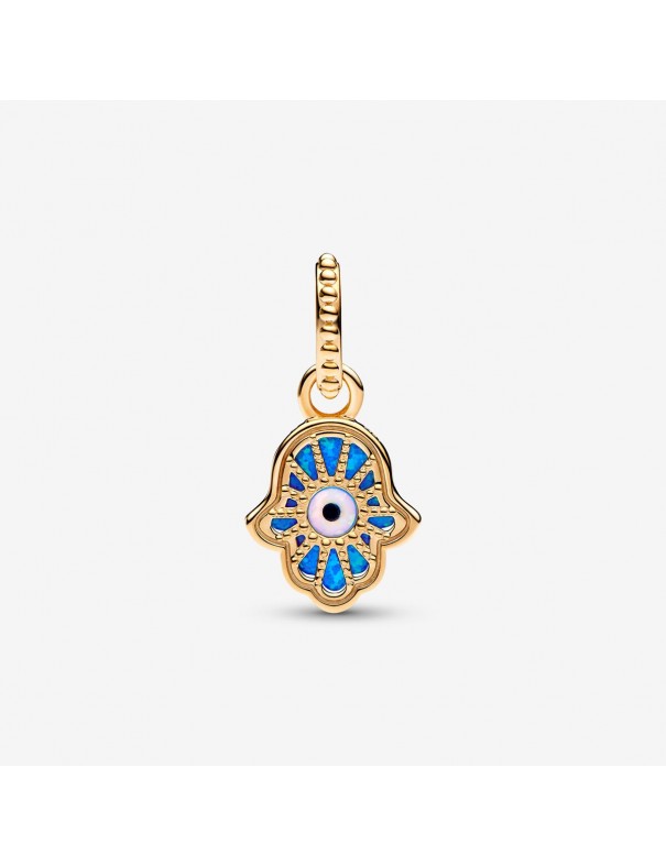 Charm colgante dorado Pandora Hamsa Azul 762699C01 para mujer. Está realizado en una aleación especial de metales con baño de oro amarillo de 14 kts. Compatible con Pandora Moments. Garantía de tres años.