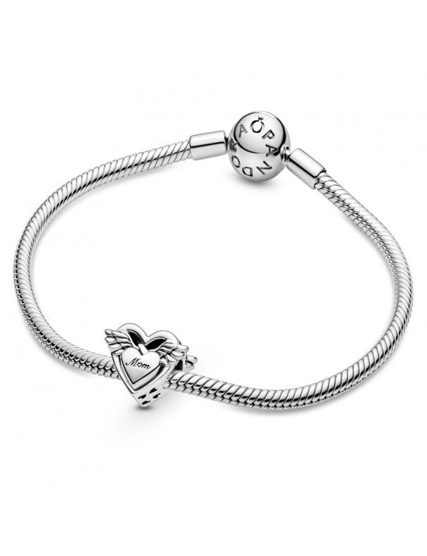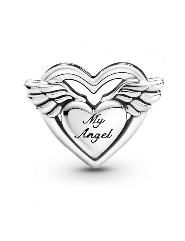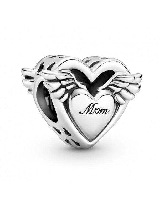 Charm Pandora Mum & My Angel 799367C00, en plata de primera ley 925mls y decorado con grabación "Mum" "My Angel".