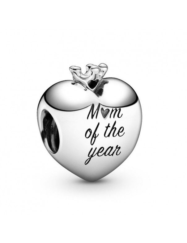 Charm Pandora Corazón Mom Of The Year 798823C00, en plata de primera ley 925mls. Decorado con grabación "Mom os the year".