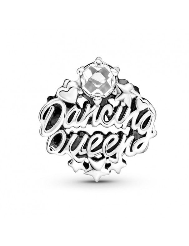 Charm Pandora Reina Del Baile Filigrana 799524C01, en plata de primera ley 925mls, decorado circonitas, estrellas y corazones.