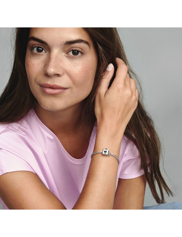 Charm Candado Y Llave De Corazón 790095C01, en plata de primera ley 925mls, decorado con grabación "Be Mine".