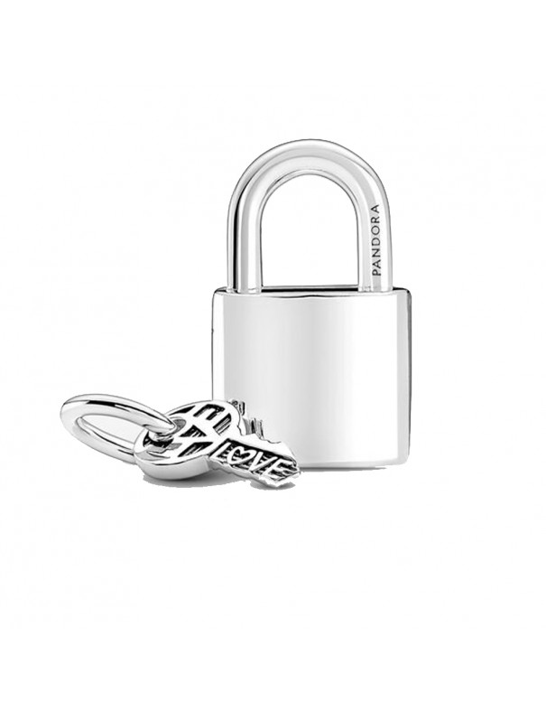 Charm Colgante Pandora Candado Y Llave 790088C01, en plata de primera ley 925mls, decorado con circonitas y grabación "Love".
