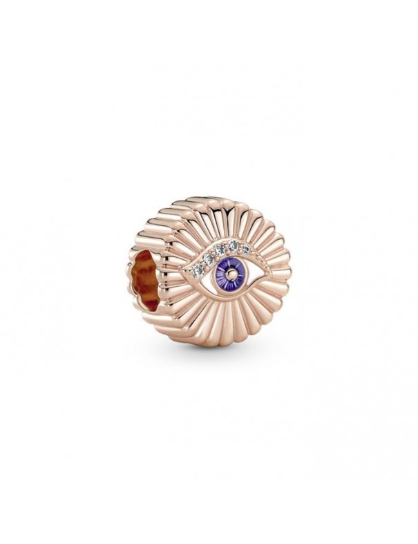 Charm Pandora Ojo que Todo lo Ve Resplandeciente 780097C01, en plata de primera ley 925mls con recubrimiento electrolítico de oro rosa de 14kts, decorado con esmalte y cristales.