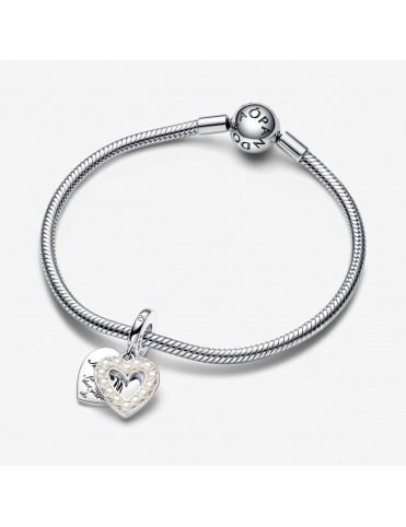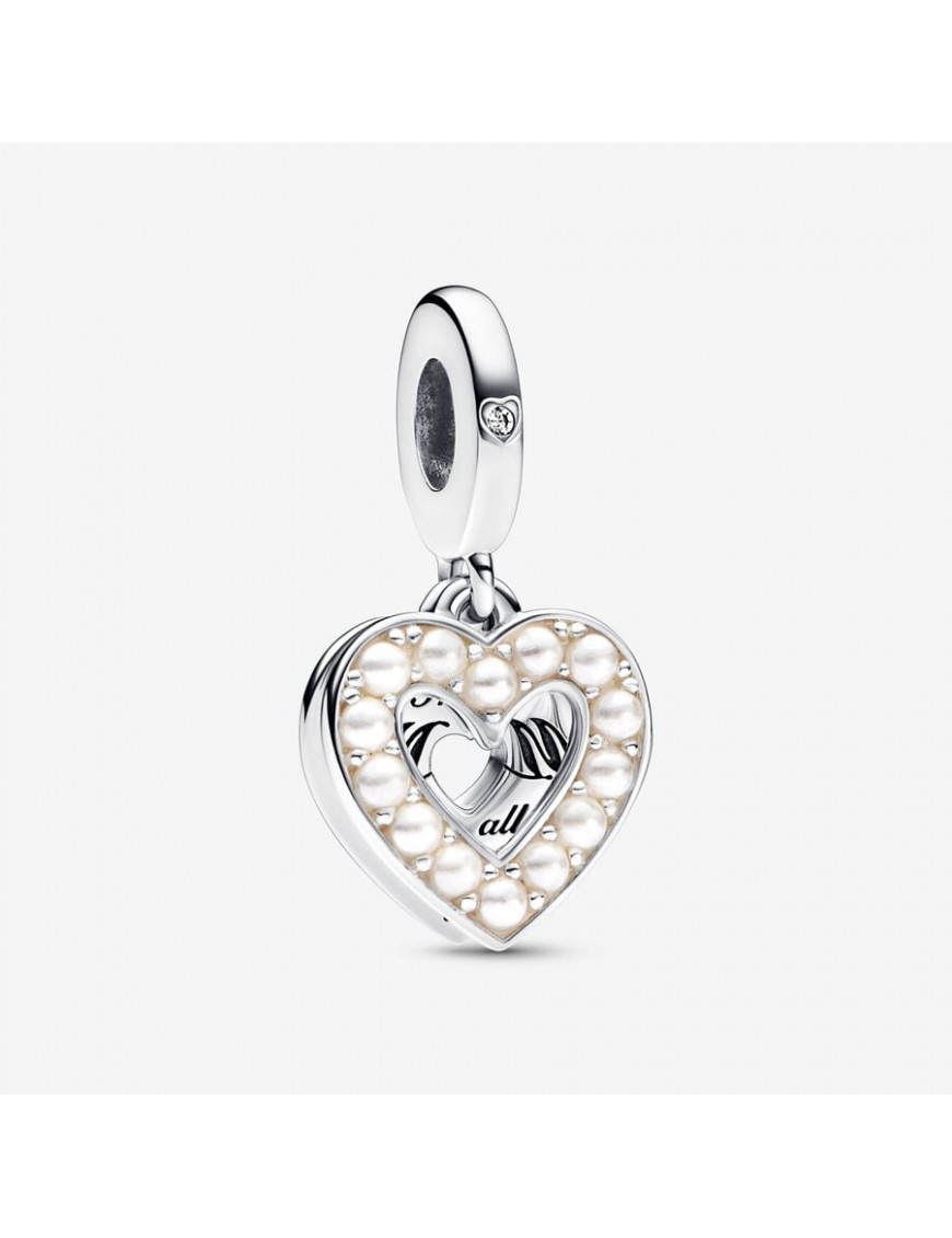 Charm doble de plata Pandora Corazón Blanco Anacarado 792649C01 para mujer. Está fabricada en plata de primera ley de 925 mls. Compatible con Pandora Moments. Garantía de tres años.