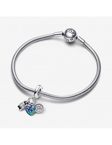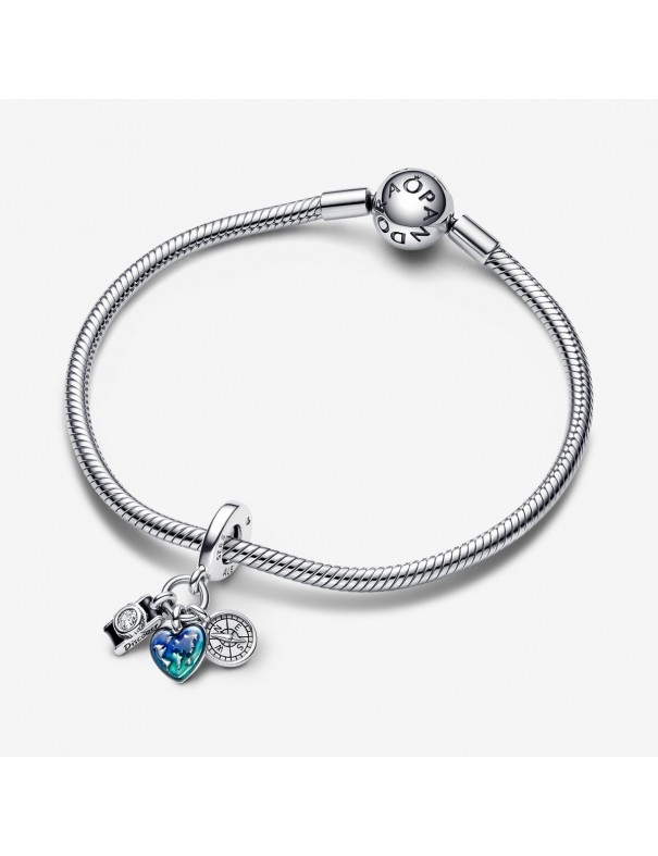 Charm triple de plata Pandora Cámara, Corazón y Brújula 792703C01 para mujer. Está realizado en plata de primera ley de 925 mls y con circonitas. Compatible con Pandora Moments. Garantía de tres años.