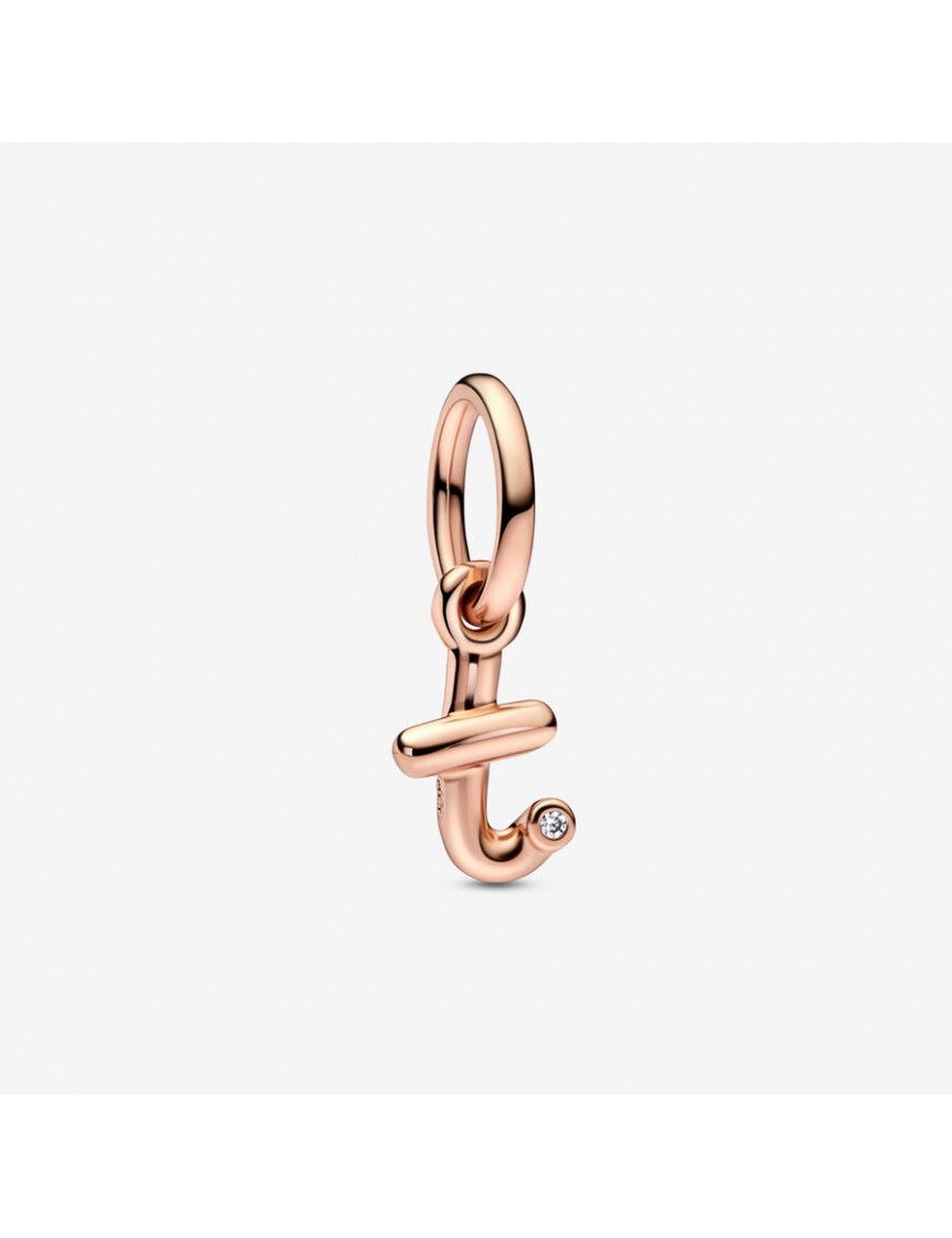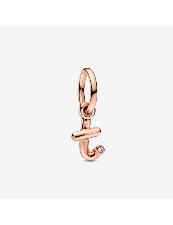 Charm colgante rosado Pandora Letra Minúscula t del Alfabeto 782469C01 para mujer. Es de una aleación especial de metales con baño de oro rosado de 14 kts y con circonita. Compatible con Pandora Moments. Garantía de tres años.