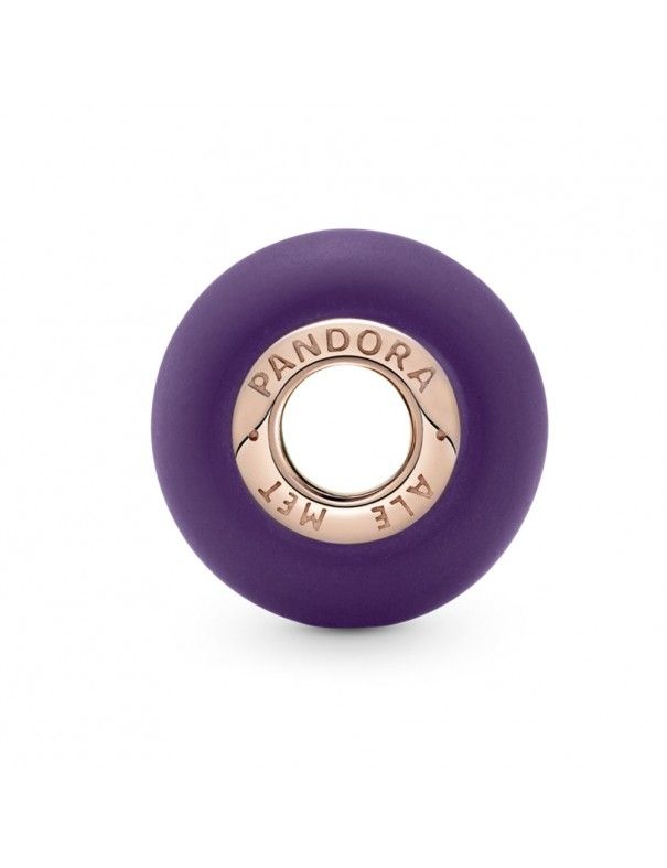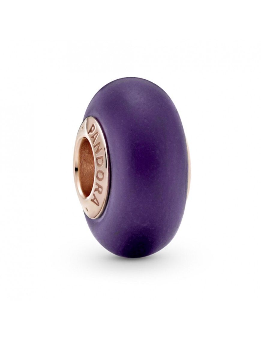 Charm Pandora Cristal De Murano Morado Mate 789547C00, en plata de primera ley 925mls con una aleación única de metales con un recubrimiento electrolítico en oro rosa de segunda ley de 14kts.