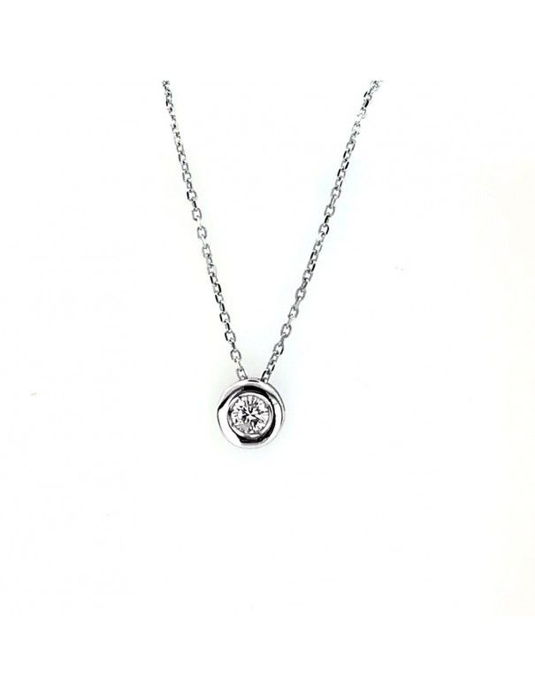Collar Oro blanco 18Kts Chatón mujer GA60849. Es un collar para mujer realizados en oro blanco de 18Kts, que lleva un colgante engastado con un diamante talla brillante de 0,15 quilates. El diámetro del chatón es de 6,5mm. Esta joya intemporal tienen dos años de garantía contra defectos de fabricación y se envía presentada de forma especial para ti en envoltorio de regalo.