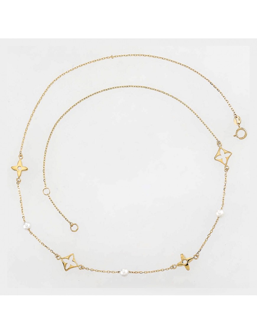 Collar Oro Perlas y Estrellas 45cm 0152044CO. Collar de oro amarillo de 18k adornado con perlas y estrellas. La cadena tiene una medida de 45cm.