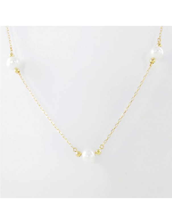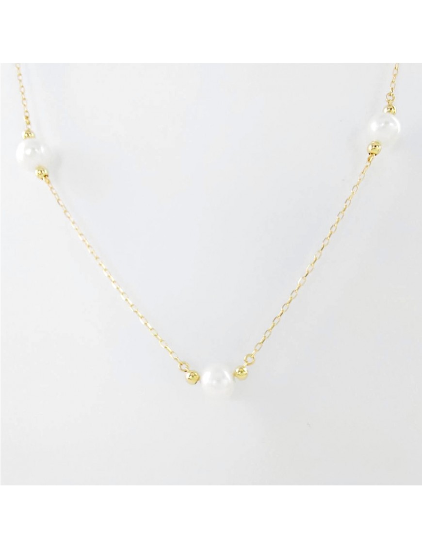 Collar Oro Perlas y Bolas 05513103CO. Collar de oro amarillo de 18k adornado con bolas lisas y perlas de 4/4.5mm.