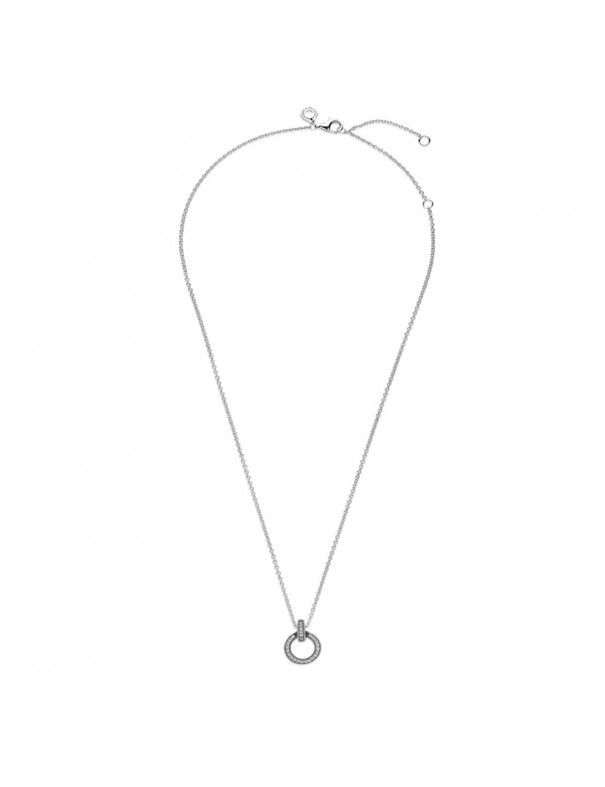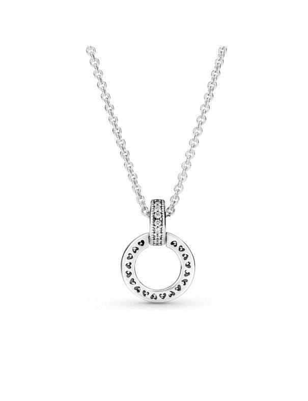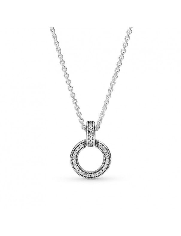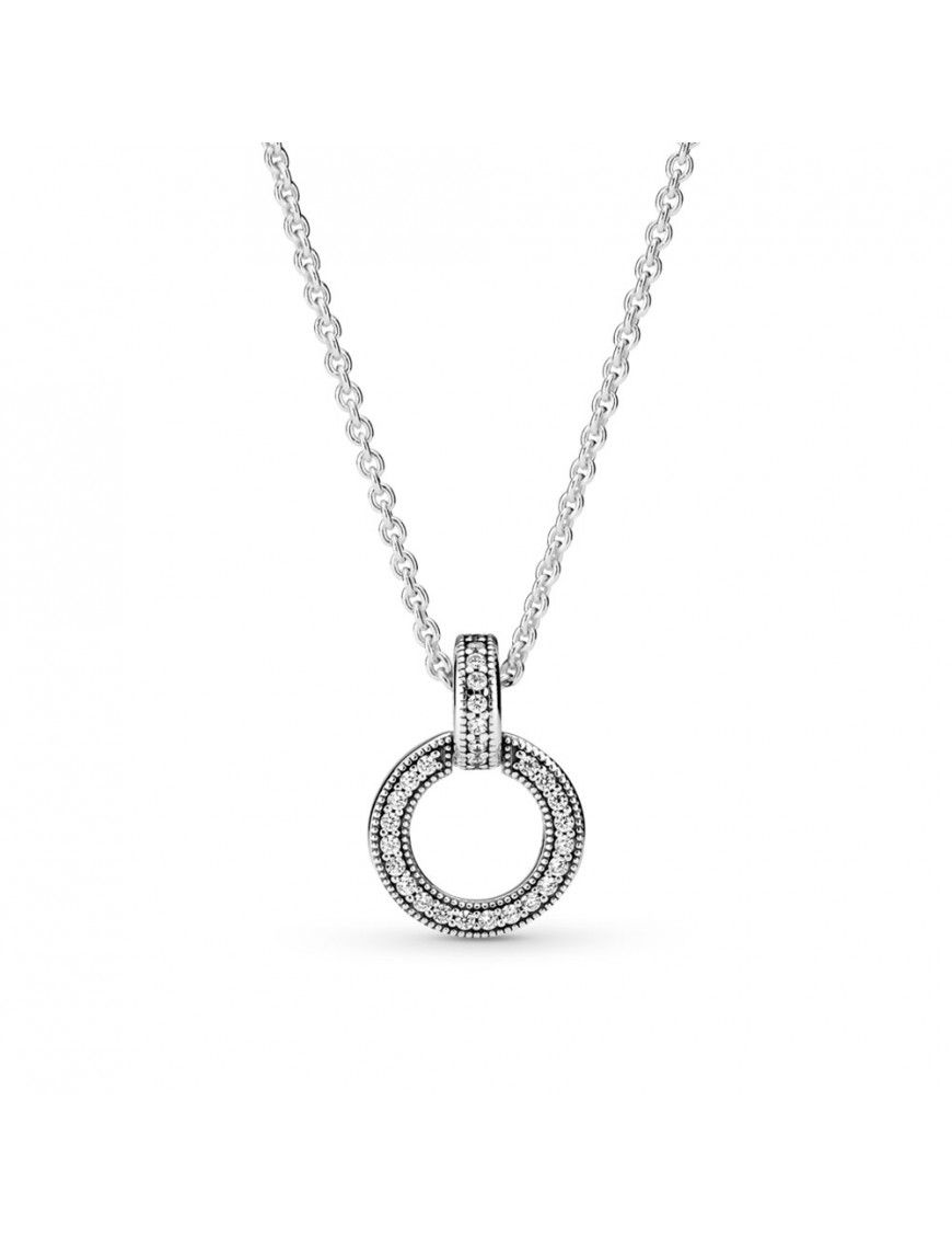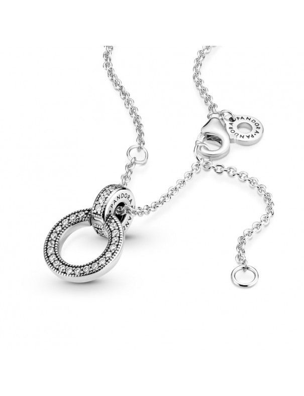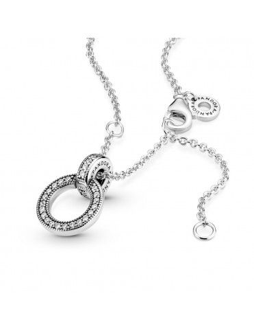 Collar Pandora Doble Círculo 399487C01-45, en plata de primera ley 925mls decorado con circonitas. Colgante reversible. Cadena de 45cm ajustabble a 45, 42 y 38cm con cierre de mosquetón.